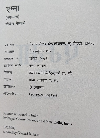 गोबिन्द बेल्वासेले लेख्नुभएको ‘एम्मा’ एउटा सुन्दर साहित्यिक कृति हो । यो कृति देश (नेपाल) छोडेर जाने प्रवासीको एकल जीवनसँगै जोडिन आउने परिवारको विरासतबारे बोल्ने डायस्पोरीक आवाज हो । अहिले पनि नेपालमा विदेश जाने धेरै अर्थ र कारणले प्रचलन जस्तै बनिसकेको छ । पहिलेपहिले विदेश जानु अध्ययन, लाहुर , ज्यालादारी काम तथा कोही सिपाहीमा भर्ती हुन जाने अर्थ लाग्थ्यो । अध्ययन र भ्रमणका निँहुँमा विदेश जानेहरु पनि बढ्दै गए । भूमण्डलीकरणको जालोमा प्रविधी, यन्त्रले गाँज्दै लगेपछि जन्मदेश छोडेर बसाई सर्नेहरु पनि बढ्दै गएका हो । मैले यतिका बिषयहरू उप्काउनुमा उपन्यास एम्माले बोल्ने भाषा र मर्मको पृष्ठभूमि दिने कोशिस हो ।